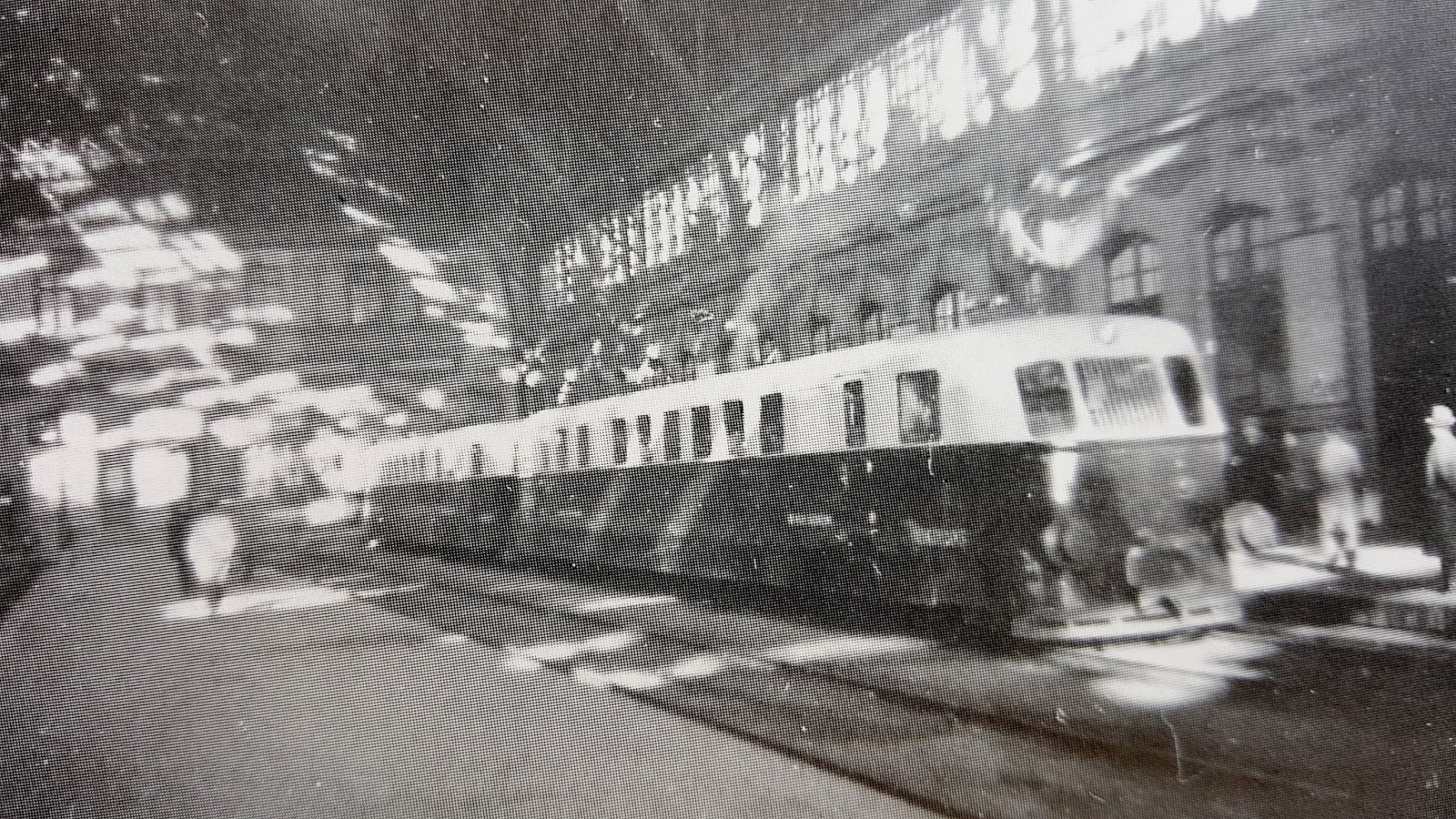 | Un Ganz en la estación de Murcia (Foto: autor desconocido/Museo Vasco del Ferrocarril) |