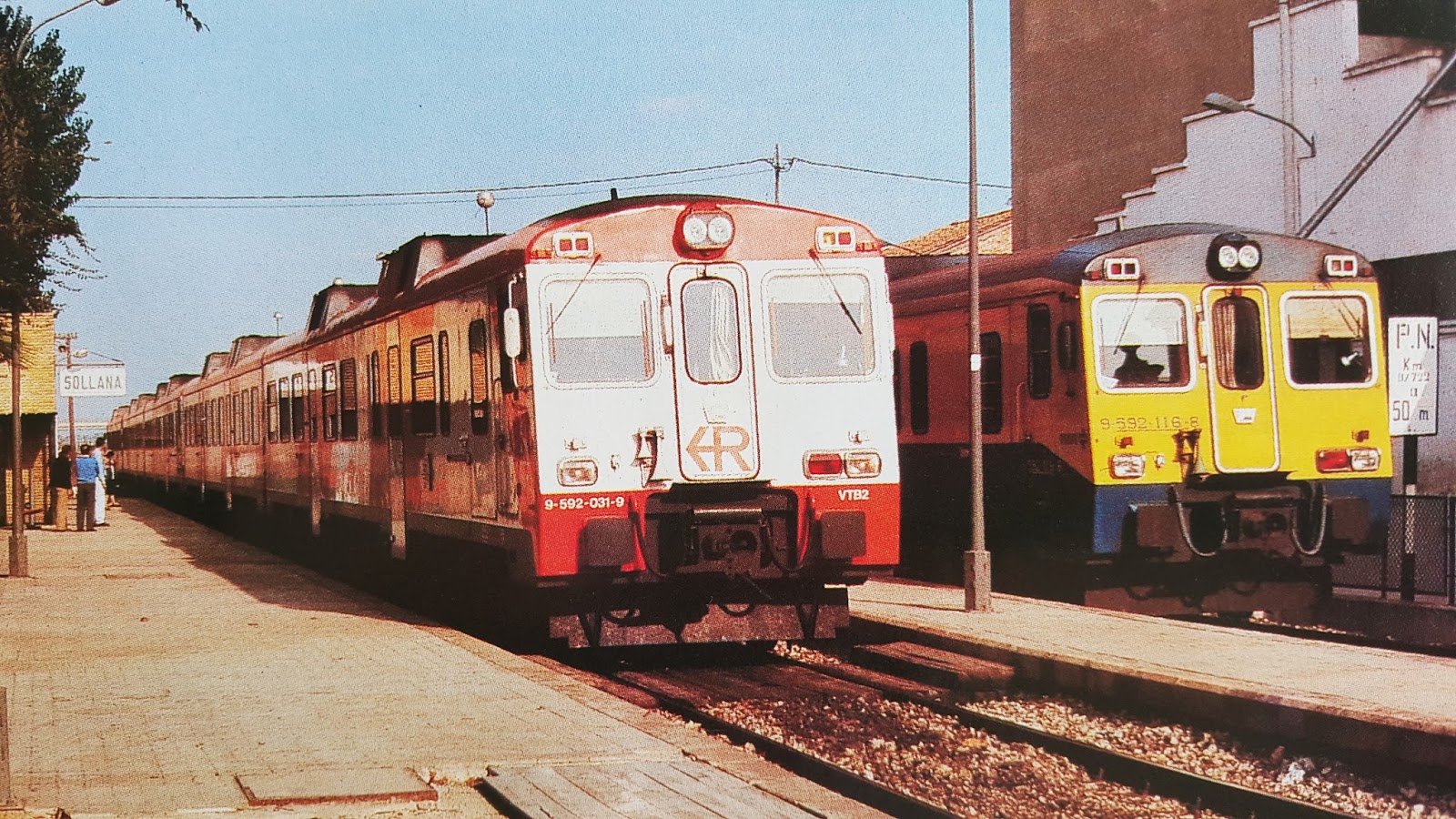 La verdad es que, en aquellos años 80, cuando nacieron los "camellos", nunca distinguí demasiado a los 592 de los 593. Poco a poco me fui enterando de lo distintos que eran mecánicamente, así como del mejor rendimiento de los primeros respecto a los segundos; eso es algo que me ha provocado siempre una cierta extrañeza y de lo que hablaré más despacio, en la entrada dedicada a los 593. En cualquier caso, su aparición era necesaria. Había un espacio que llenar entre unos ferrobuses que estaban haciendo servicios para los que no estaban diseñados, y unos TER que no daban abasto para cubrir, por una parte, los huecos que iban dejando los TAF y, por otra, nuevos servicios.