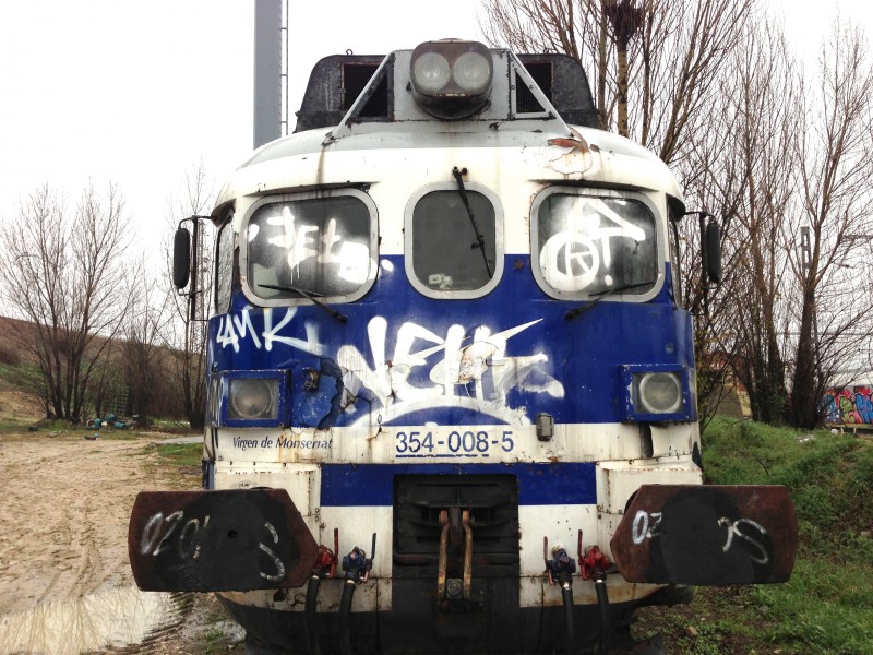 | La 354-005 apartada en Las Matas. Junto a ella aparece, probablemente, la 352-002 también apartada y desguazada en el 2010 (Foto: autor desconocido/a través de Forotrenes) |