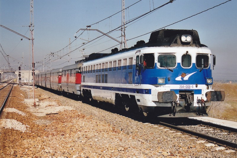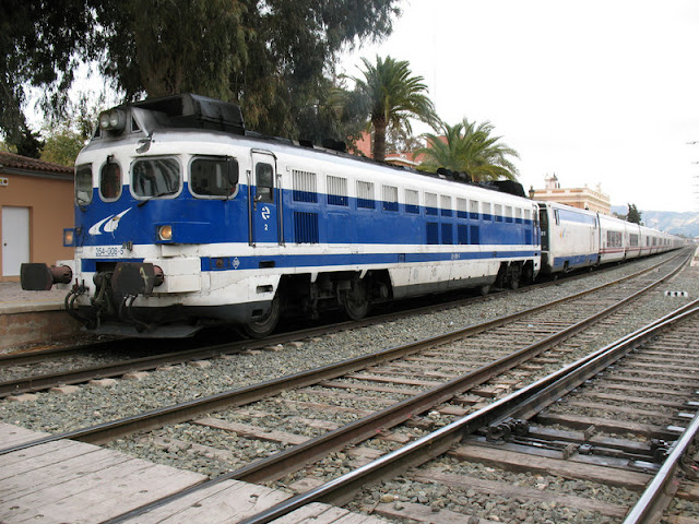 | En febrero de 2009 la 354-008 encabeza un Altaria hacia Cartagena. Era su último año en servicio (Foto: autor desconocido/a través de Forotrenes) |