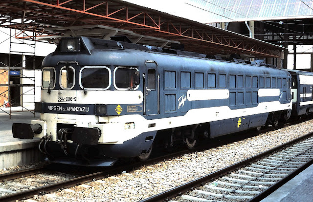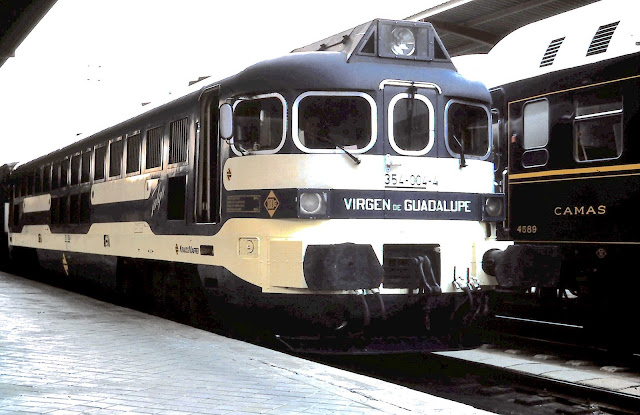 Por otro lado, y aunque no lo he encontrado en la documentación que manejo, doy constancia por las fotografías siguientes de su presencia en cabeza del pendular Madrid-Gijón en los primeros años 90.