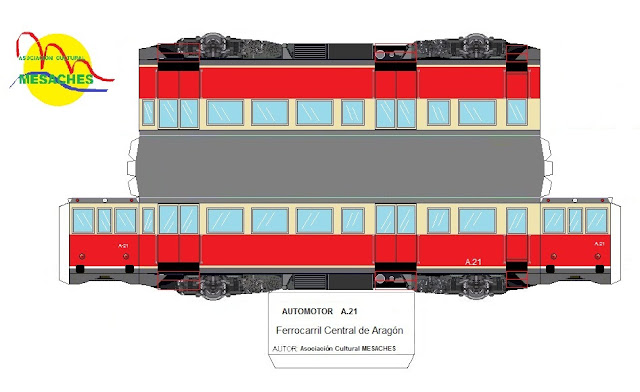Al menos, junto al recuerdo nostálgico de estos automotores, tenemos este detalle entrañable: un recortable de los A11 y A21, en sus colores de origen, realizado por la asociación cultural MESACHES de Zaragoza.