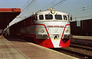 Aquello no pegaba ni con cola para aquella locomotora y yo personalmente lo consideré como una falta de respeto a una gran y veterana locomotora. Apareció además sin su corrrespondiente adscripción mariana, Virgen del Camino, aunque poco después y supongo que a requerimientos de Patentes Talgo, lo recuperó, como con vergüenza, en un lateral y con letras pequeñas.