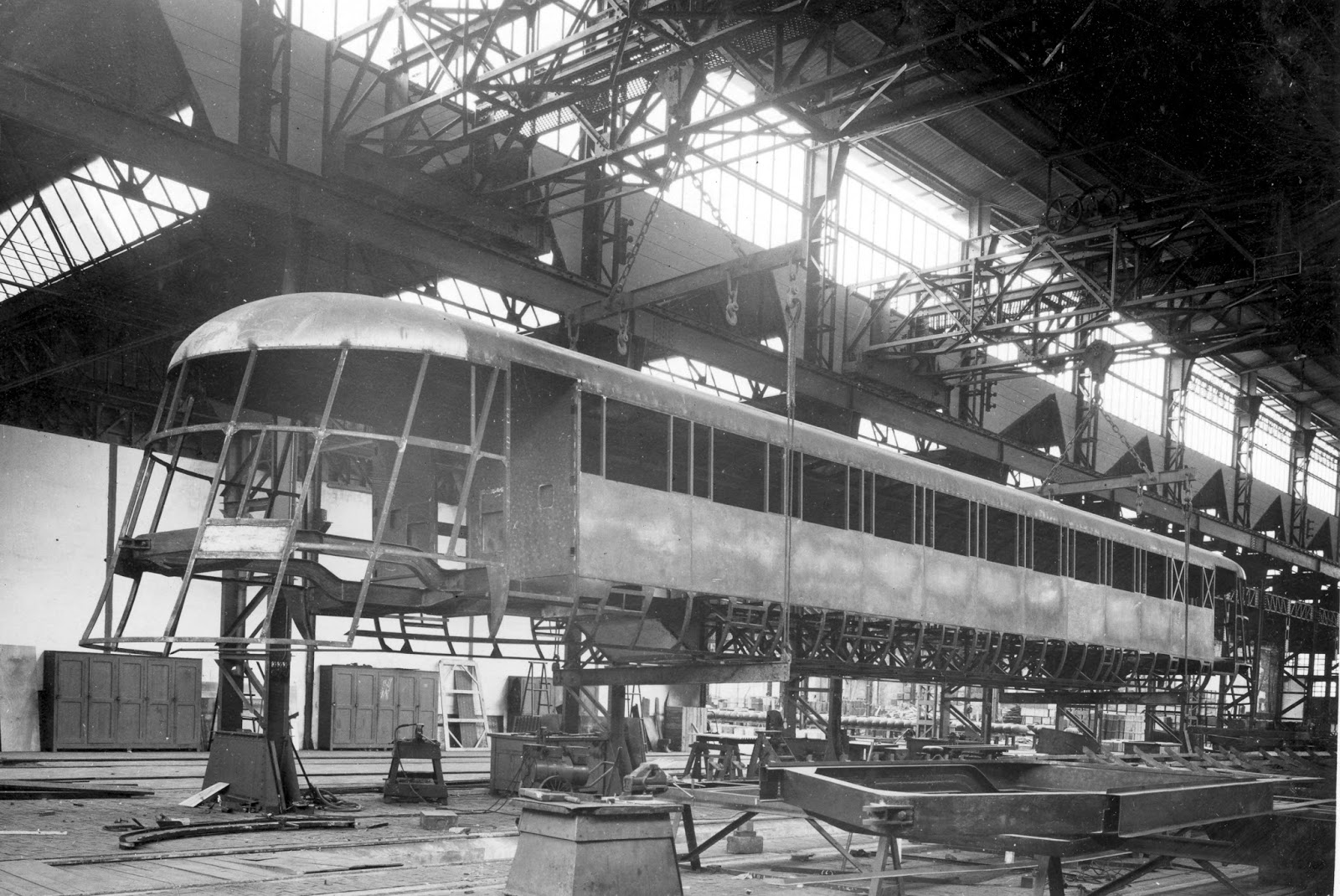 | Una littorina de Norte en proceso de construcción en mayo de 1938 (Foto: Archivo Euskotren/Museo Vasco del Ferrocarril) |