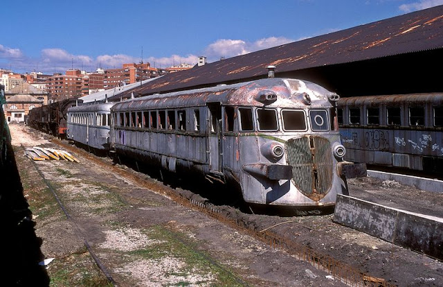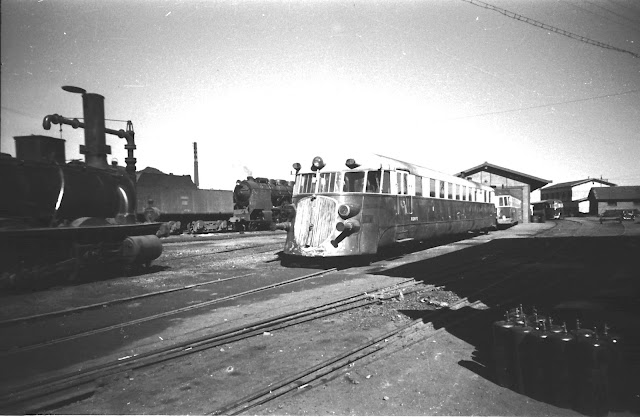 | El 9217 en la estación de Argamasilla de Alba, en la línea Cinco Casas-Tomelloso (Foto: autor desconocido) Entre 1961 y 1964 se acometió una profunda reforma de estos vehículos. En la misma se sustituyó el motor Fiat por otro Pegaso de parecida potencia, se rediseñó la caja de cambios y se dispusieron 88 asientos, únicamente de segunda clase. Así mismo se instaló un pequeño bar. El primer servicio tras la reforma fue en el verano de 1962 el Madrid-Cuenca-Valencia. Es en él que yo conocí a las littorinas, tal como narré en esta otra entrada... aunque mi sensación es que ya hacían ese servicio incluso antes de ser modernizadas. Es curioso que, antes de un año tras la modernización, algunos vehículos pasaron nuevamente por el taller para recibir algunas nuevas modificaciones y, además, todos recibieron nuevas suspensiones, manguetas y cajas de grasa en los ejes portadores. De todos modos, y por lo que se refiere a la transmisión, parece que la reforma no funcionó demasiado bien.