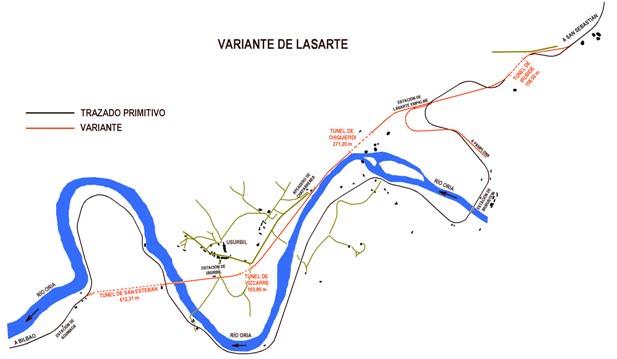 Fruto de este trabajo, presentado al Consejo de Administración el 28 de junio de 1909, y coincidiendo con la necesidad de establecer en Lasarte una estación con capacidad suficiente para asegurar el tráfico combinado con el ferrocarril en construcción desde este punto a Pamplona, el popular “Plazaola”, se decidió construir una variante en esta zona. Para entender a primera vista la dificultad del trazado original, basta con señalar que la nueva variante, de 4.506 metros de longitud, sustituiría con ventaja el antiguo tramo, de 8.118 metros ¡un 45% más corto y, además, con curvas más suaves y aptas para mayores velocidades!