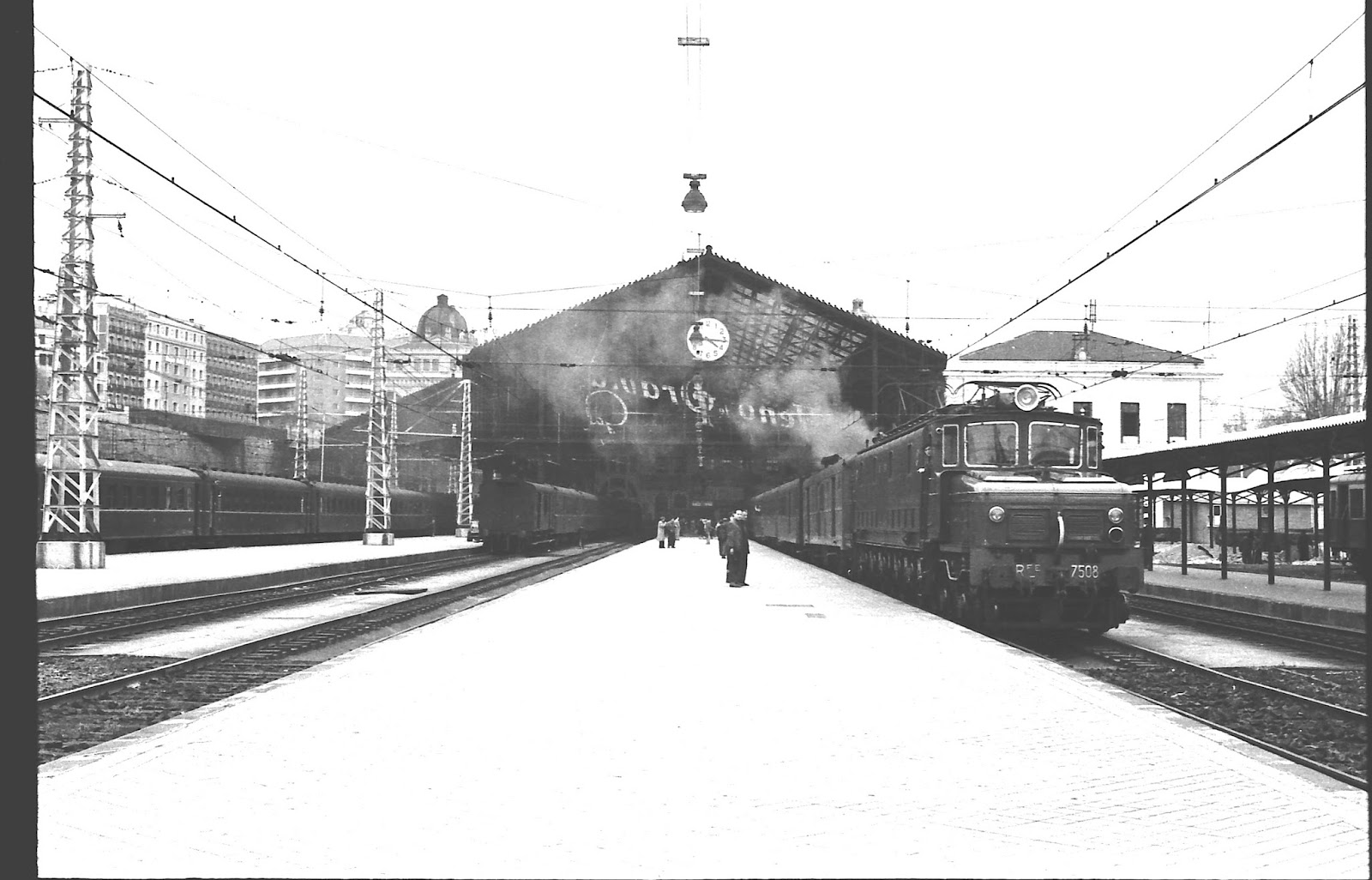 | También es la 7508 la que aparece en esta foto en Príncipe Pío flanqueada por las omnipresentes "trescientas" (foto: AHF/MFM. Fotógrafo desconocido)) |