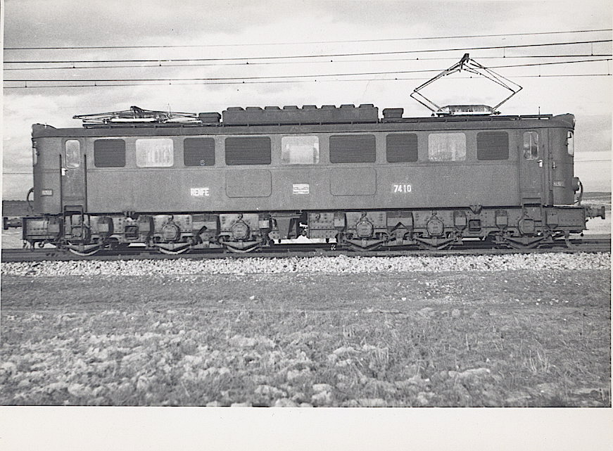 | Vista lateral completa de una 7400, en este caso, la 7410 (foto: Archivo Histórico Ferroviario del Museo del Ferrocarril de Madrid (AHF/MFM). Autor desconocido) |