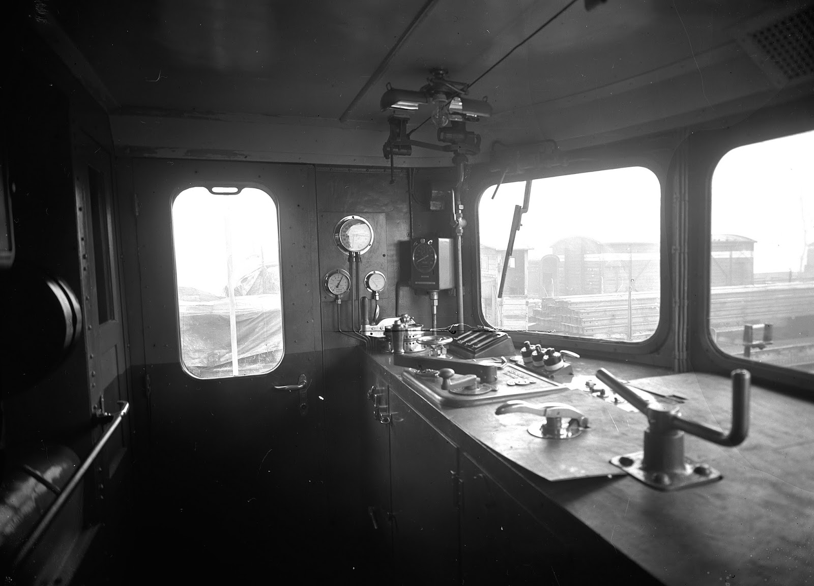 | Cabina de una 7400 (foto: AHF/MFM. Fondo del Servicio Comercial de RENFE) |