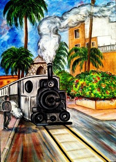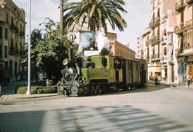 | Una bucólica escena de la nº 9 con su tren por las calles de Castellón (foto: Wyrsch) |