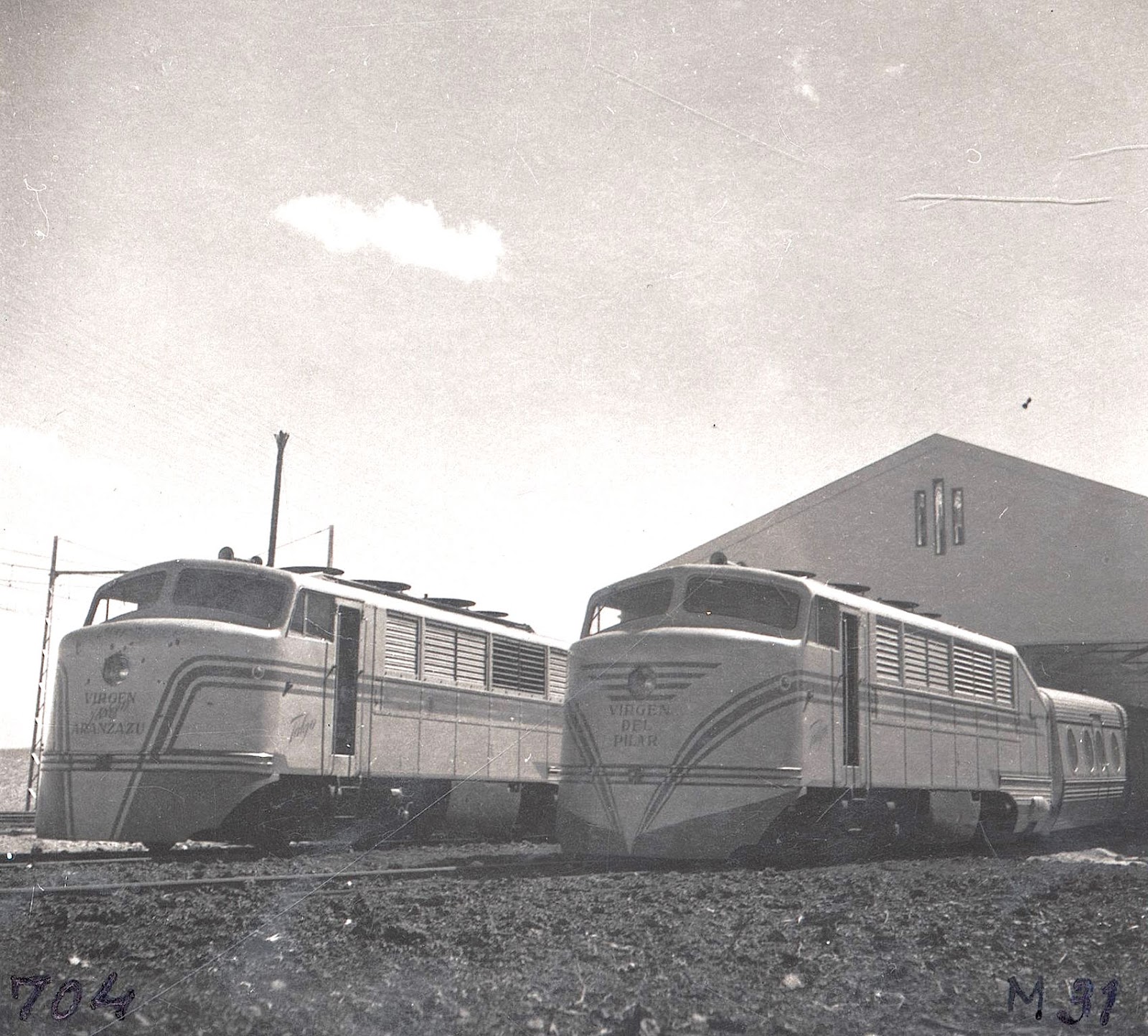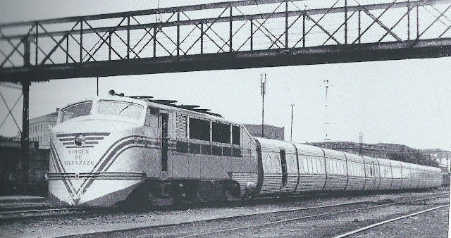 Pues bien, tanto las tres locomotoras como las dos composiciones fueron transportadas desde Estados Unidos por la Naviera Aznar llegando a España en noviembre de 1949. Las primeras fueron desembarcadas en Santurzi y las composiciones en Pasajes. Fueron numeradas como 1T, 2T y 3T y al mismo tiempo se las "bautizó" con nombres de vírgenes por expreso deseo de la familia Oriol, propietaria de Patentes Talgo (empresa de la que ya se había parcialmente desvinculado Alejandro Goicoechea), comenzando así una tradición que se extendió hasta las talgas 354. De este modo la 1T fue la Virgen del Pilar, la 2T, Virgen de Aránzazu y la 3T, Virgen de Begoña.