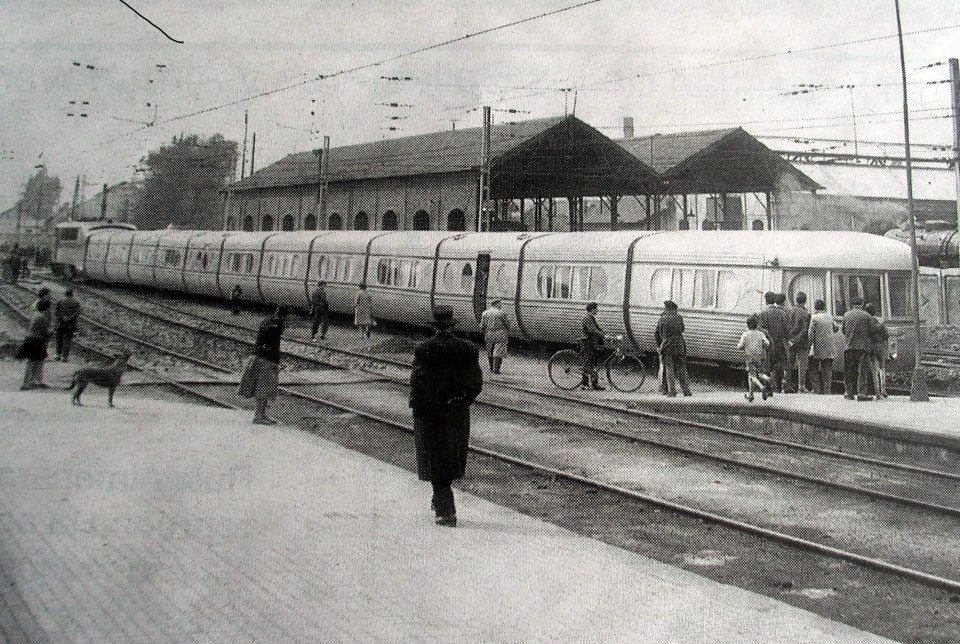 Un Talgo II detenido en Córdoba durante una de sus pruebas entre Madrid y Sevilla en abril de 1960 (Foto: autor desconocido)