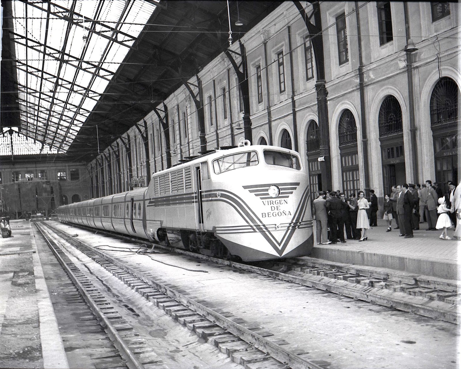 | La 3T "Virgen de Begoña" en cabeza del talgo a Hendaya. Estación del Norte de Madrid. 1954 (Foto: AHF/MFM. Autor: Vicente Garrido) |