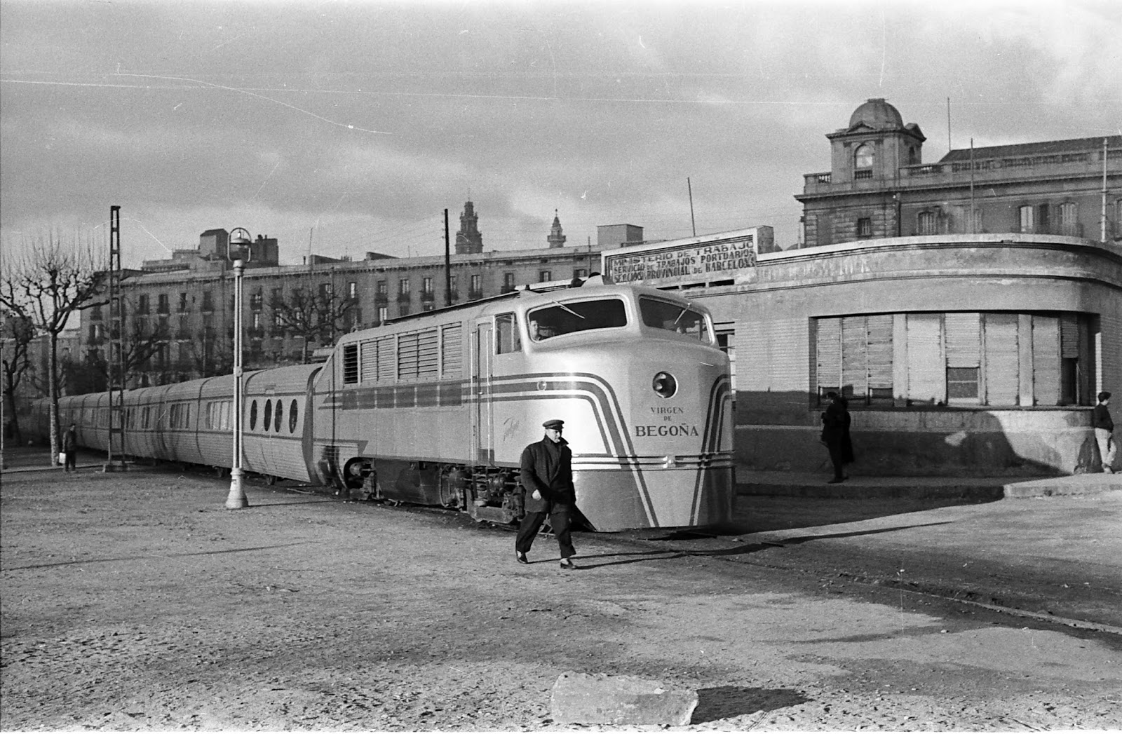 | El típico paso del Talgo II por la zona portuaria de Barcelona para proceder a sus maniobras de inversión (Foto: AHF/MFM/Colección Juan B. Cabrera) |