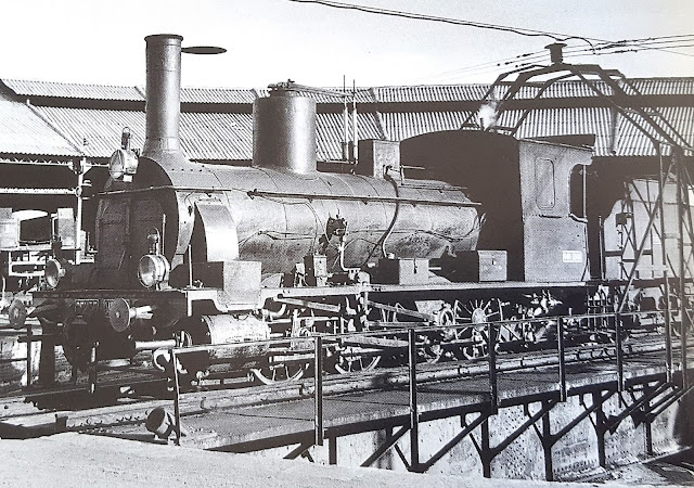 Si bien en los planes iniciales de la compañía figuraba disponer de cinco máquinas de este rodaje para sus trenes de mercancías, pronto se vio que esta previsión estaba muy sobredimensionada y parece que ya, antes de salir de fábrica, fueron transferidas tres de ellas a la Compañía del Sur de España, y de ellas me ocuparé en la correspondiente entrada.