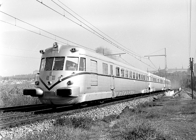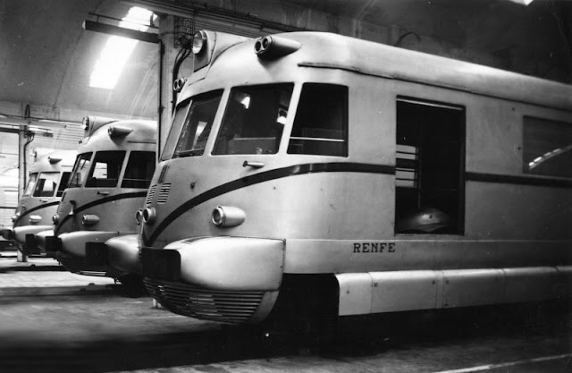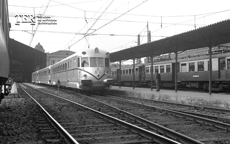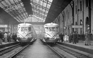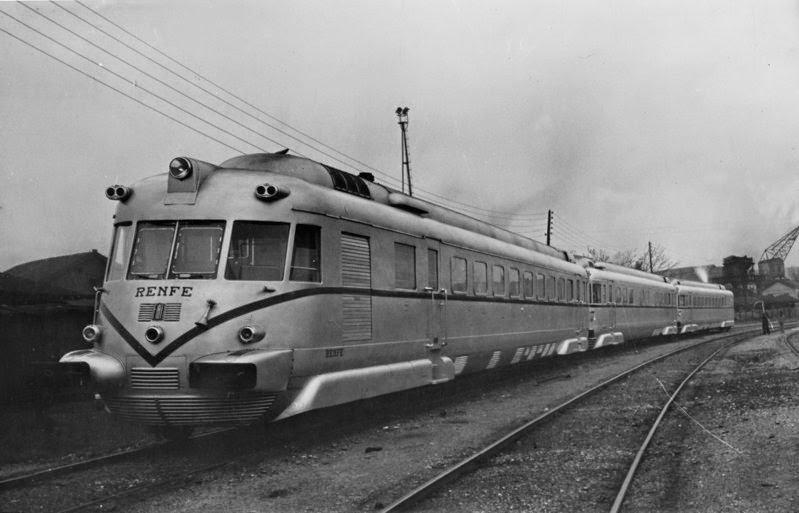 Es difícil escribir sobre mitos porque está casi todo dicho sobre ellos y además puede caerse en la fantasía o en la exageración, y el TAF es uno de los grandes mitos del ferrocarril español. Pero también fue una excelente y sorprendente realidad en aquellos primeros años 50, cuando los viajes diurnos de una cierta calidad corrían sólo a cargo de un testimonial Talgo II y de los sufridos automotores Renault, Fiat, Ganz y Maybach, que tuvieron que sobrevivir entre todas las dificultades de la postguerra. Las cosas empezaron a cambiar a finales de la década de los cuarenta cuando el aislamiento exterior al que estaba sometida España y la evolución de la situación política y económica interna, permitió la definición en 1949 por el Ministerio de Obras Públicas del llamado Plan General de Reconstrucción y Mejora del Servicio (PGR). Para su financiación se emitieron obligaciones por valor de 5900 millones de pesetas con una ampliación posterior de otros 6700 millones. En el PGR se contemplaba la mejora de las infraestructuras junto con la adquisición de vehículos de tracción vapor, eléctrica y diesel y de nuevos coches y vagones. _______________________________________________________________ Entrada publicada originalmente en septiembre de 2014 y revisada y ampliada en junio de 2016 y febrero de 2018 Ya desde antes de la Guerra Civil, las compañías ferroviarias eran conscientes de la necesidad de contar con trenes de viajeros de tracción diesel, compuestos incluso por varias unidades e incluso llegó a existir algún anteproyecto basado en la tecnología ferroviaria alemana. El proyecto se retomó por la administración franquista tras la finalización de la contienda y en principio se volvía a apuntar a Alemania como su suministradora. Sin embargo, las consecuencias de la Segunda Guerra Mundial hicieron que el proyecto se reencaminara hacia Italia, y en concreto hacia la casa FIAT, con gran experiencia en la construcción de trenes autopropulsados de los cuales RENFE ya tenía alguna experiencia a través de las famosas littorinas 9215-9226.
