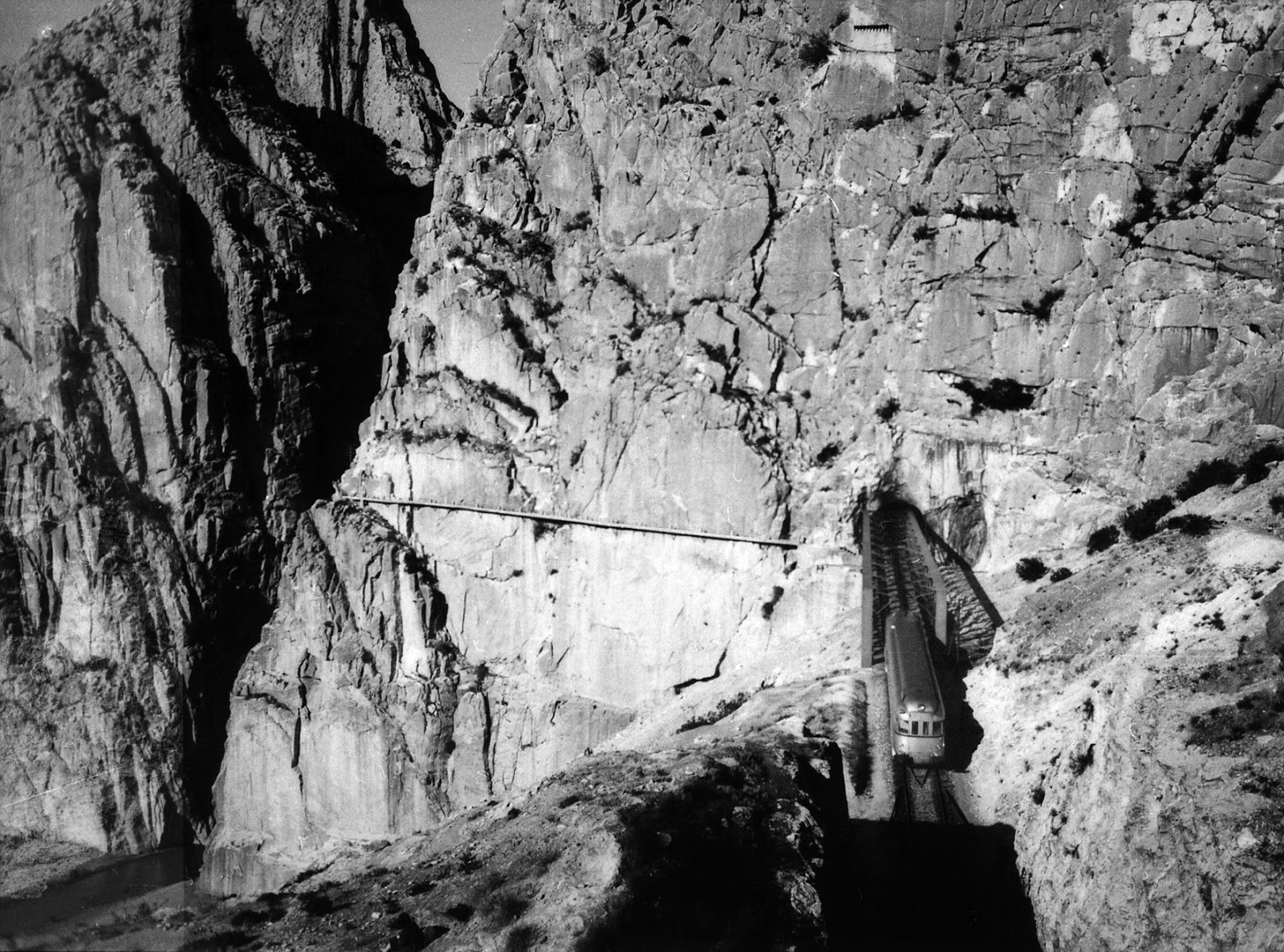 | Y aquí en otro enclave emblemático: en el desfiladero de El Chorro con el caminito del Rey (AHF/MFM. Autor: Cuenca) |