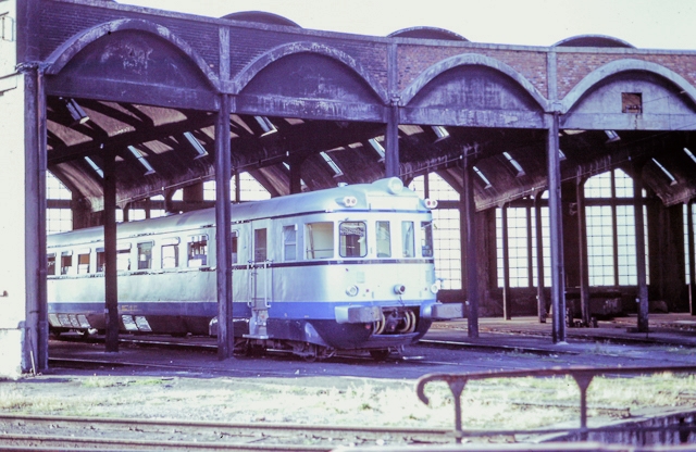 | El 595-005 en el depósito de Burgos en agosto de 1974 (Foto: John Sloane) |