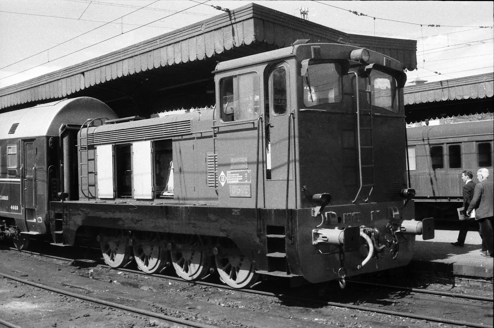 Como comentaba en una entrada anterior, a principios de la década de los 50 del siglo pasado, RENFE tuvo que plantearse la potenciación y agilización de las maniobras en estaciones y depósitos encargadas hasta entonces a las ya achacosas locomotoras de vapor de los tipos 0-3-0 y 0-4-0. La solución pasaba por la adquisición de un buen número de locomotoras diesel de maniobras, vista la positiva experiencia de su funcionamiento en diversos países europeos. Las alternativas eran la construcción bajo licencia, el desarrollo de un modelo autóctono, o la importación directa. Por otra parte se planteaba la disyuntiva entre optar por transmisiones eléctricas o apostar por la opción -básicamente alemana- de las hidráulicas, menos pesadas pero de mantenimiento más complicado. La decisión fue salomónica: se adquirieron veinte de transmisión eléctrica, fabricadas en España bajo licencia, que iniciaron las pobladas series 10300 y 10400, de la que ya nos hemos ocupado, y veinte con transmisión hidráulica, importadas directamente de Alemania. Fueron las 10501 a 10520, que son de las que nos tratamos en esta entrada. Un año después, en 1955, aparecerían los tractores 10100 de diseño y fabricación totalmente nacionales.