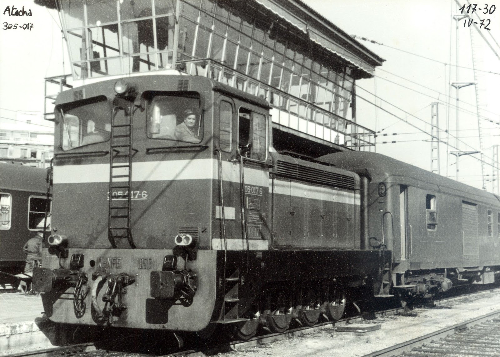 | El ya 305-017 maniobra en una zona emblemática de la estación de Atocha en 1972 (AHF/MFM. Autor: J. Arenillas) |