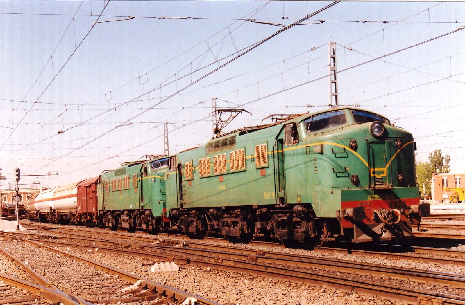 Sin embargo, esta prolongación de vida no duró mucho. En 1990 habían sido dadas de baja las 003, 021 y 023, por lo que la serie quedaba ahora reducida a 25 unidades. En diciembre de 1991, se dieron de baja doce locomotoras más y unos días después se dio orden de retirar las restantes. La última que bajó sus pantógrafos fue la 7820 el 10 de enero de 1992. Por eso, las fotos que pongo a continuación, obtenidas en Alcázar en el verano de 1990, tienen ya un sabor de despedida: