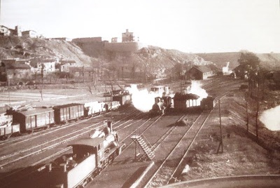| Estación de Teruel. En primer plano aparece una locomotora de la serie 21-30 del Central de Aragón (objeto de esta entrada) y más allá, probablemente, una 0-3-0 de la serie 1-8 (foto: Ribera) |