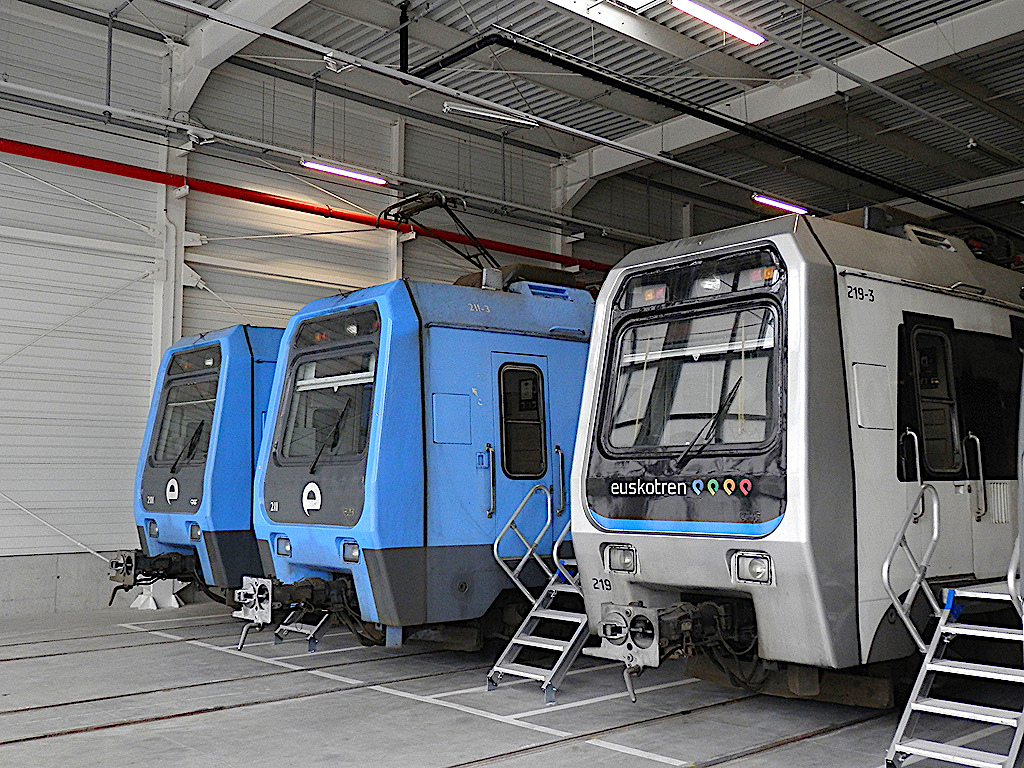 Las 201, 219 y 211 en los talleres de Euskotren en Lebario (Foto: Giputrains)