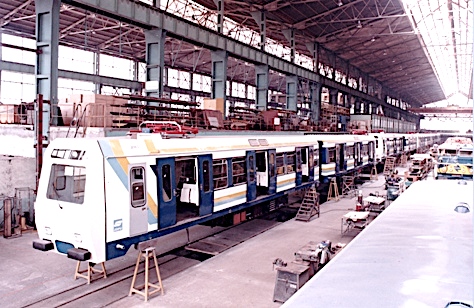 | Construcción de las unidades 200 en los talleres de CAF (Archivo Euskotren/Museo Vasco del Ferrocarril) |