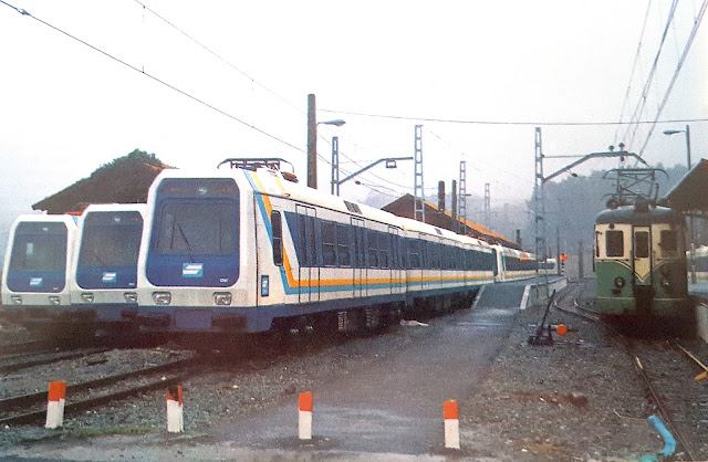 En 1983, el año en que la Maquinista Terrestre y Marítima (MTM) comenzó a entregar a FEVE los modernos "Apolo" de la serie 2400, a los que me referí en una entrada anterior, Euskotren (ET/FV) firmaba un contrato con un consorcio formado por CAF, Westinghouse España, Babcock&Wilcox y General Electric Española (GEE), para el suministro de veinte unidades eléctricas de nueva generación, que constituirían su serie 200.