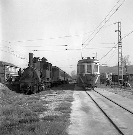 y también en 1960 llegaron cinco automotores eléctricos Naval (originalmente M.O.P. 3016 a 3020, asignados al Eléctrico del Guadarrama donde nunca llegaron), que se integraron como 5001 a 5005 y cinco remolques que fueron los 6001 a 6005. Todos ellos debieron empezar a operar en 1961. En este enlace puede verse un reportaje sobre la inauguración de sus servicios el 9 de junio de ese año (cortesía de Fernando Santiago)