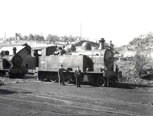 | Una de las Borsig 1-3-1T de Minas de Cala (donde está fotografiada). Fue una de las que pudo pasar a Catalanes en la década de los 40 (Foto: archivo Paco Alcázar) |