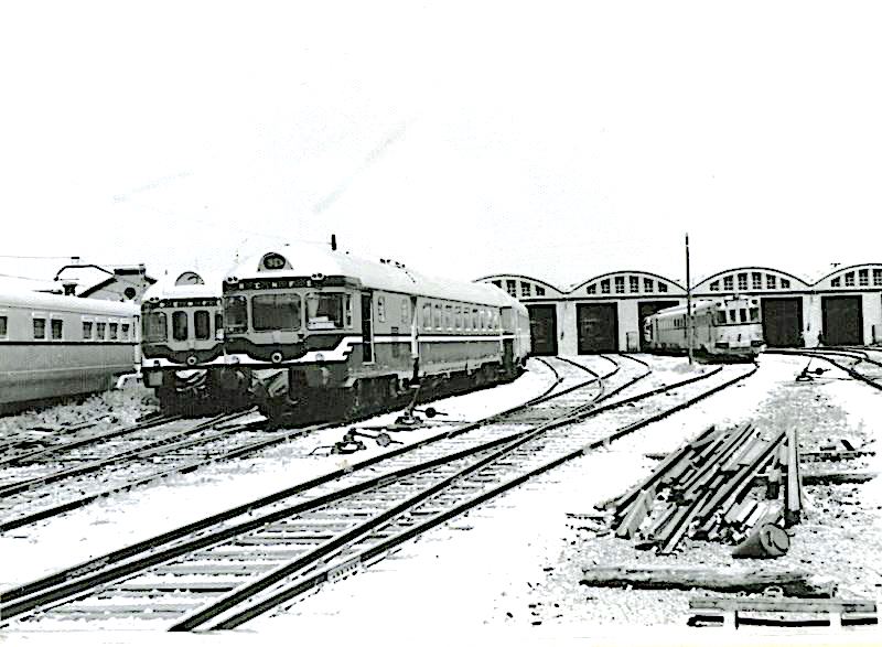 Los TAF, de los que ya me ocupé en estas entradas, pusieron el listón muy alto. Su introducción en 1952 supuso un cambio radical en la forma de viajar por ferrocarril y su éxito originó que el parque de estos trenes se empezara pronto a quedar corto ante la gran demanda existente. Por otra parte, su gran flexibilidad de explotación facilitaba muchas combinaciones y posibilidades, pero también presentaba debilidades ya que una composición motor-remolque podía quedarse corta de potencia en algunas pendientes o bien, la configuración con un único coche motor se quedaba frecuentemente escasa en número de plazas. Todas estas razones, junto con la necesidad de profundizar en una amplísima reforma del ferrocarril español, llevó a que RENFE planteara muy a principios de los 60 un concurso para la adquisición de nuevos trenes automotores. De este modo, se adjudicó de nuevo a FIAT en 1962 la fabricación de 30 trenes diésel con un coste por unidad de 34.654.165 pta, pero, en este caso, con una composición de cuatro vehículos: motor/remolque con cabina + remolque con cabina/motor. Dada la posibilidad de circular como semitrenes motor/remolque con cabina -que es como se llevaron a cabo la mayor parte de sus servicios- se numeraron del 001 al 060, constituyendo la serie 9701 a 9760 que, tras aplicar la matriculación UIC, se convirtió en la 597-001 a 597-060. Cabe señalar que hubo planes -que no llegaron a materializarse- para adquirir otros treinta y cuatro trenes similares ¿Tuvo en ello algo que ver la llegada de los Talgo III en 1964? Es muy posible.