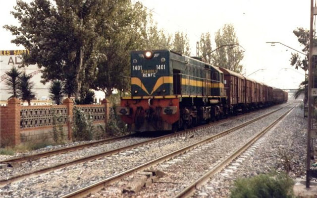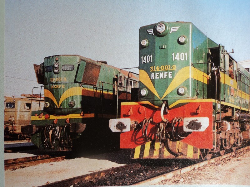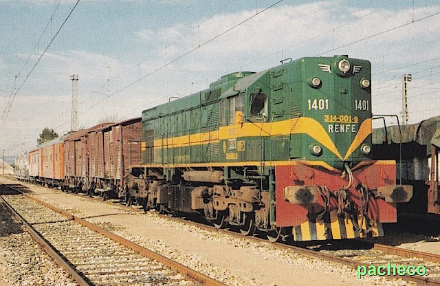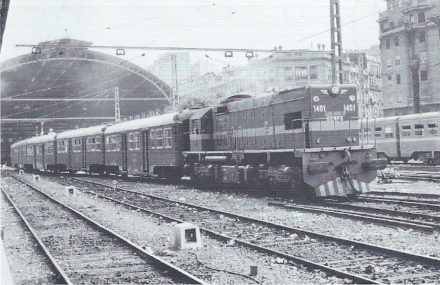 Como vimos en una entrada anterior, en la década de los 50 la compañía norteamericana ALCo había entrado en la tracción diesel de RENFE a través de las series 1600 y 1800, adquiridas en parte a través del famoso Plan de Ayuda y precedidas por la famosa "Marilyn". A finales de la década, la Red desarrolló un nuevo plan que pretendía llevar a cabo durante los años 60 una rápida dieselización de las líneas no susceptibles de electrificación, de modo que permitiera el abandono definitivo de la tracción vapor a principios de los 70. Este plan tenía que llevarse a cabo a través de sucesivos concursos de adquisición de locomotoras, y con el fin de poder participar en ellos con buenas posibilidades, MACOSA decidió construir una locomotora de demostración bajo licencia de la otra gran empresa gigante norteamericana de locomoción, la General Motors (GM), que podría introducirse así también en el mercado español. Se repetía así de algún modo la experiencia de ALCo con la "Marilyn" y también, como en aquel caso, dio buenos resultados. A esa locomotora de GM-MACOSA que luego fue la 1401 dedico esta entrada.