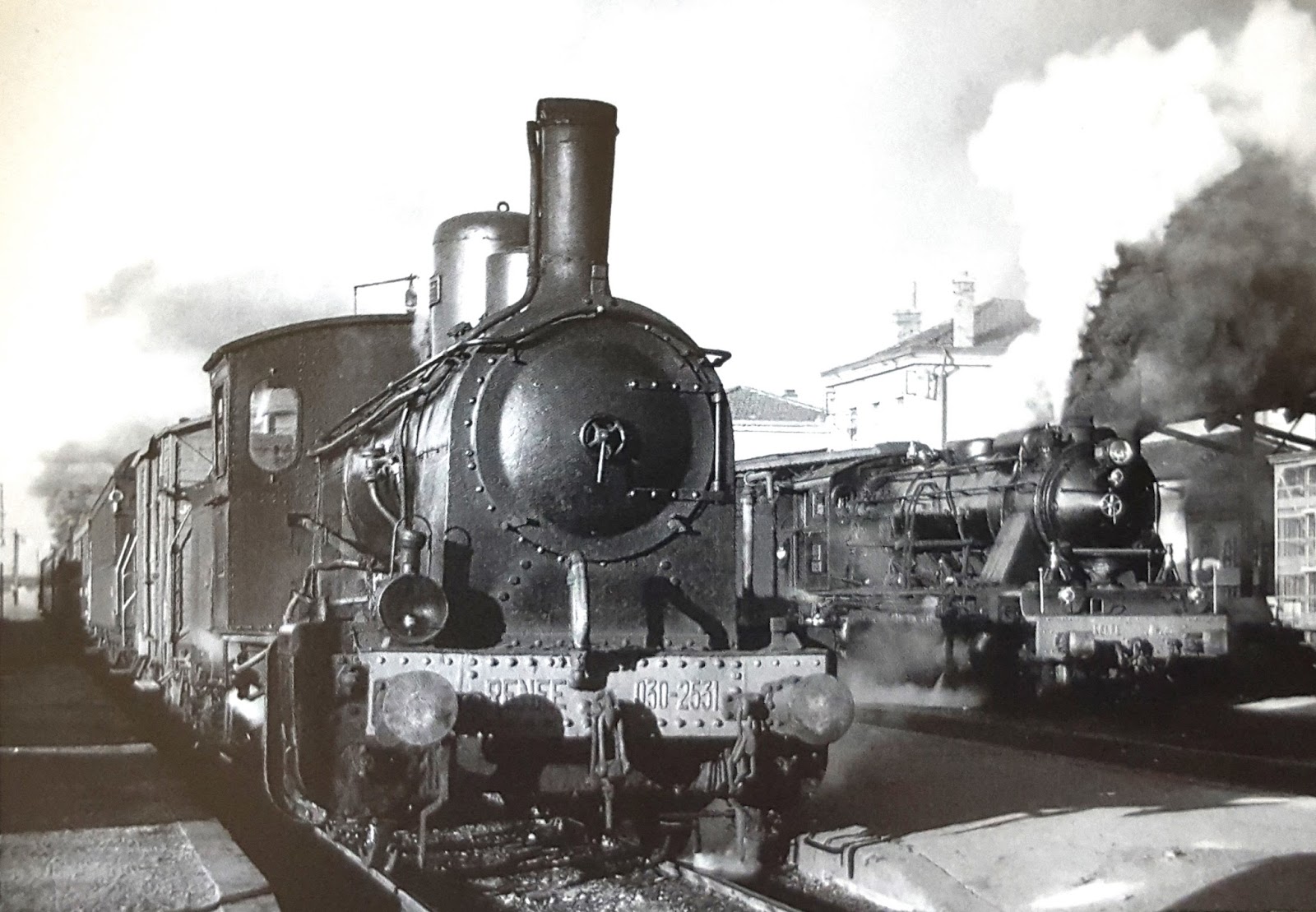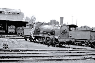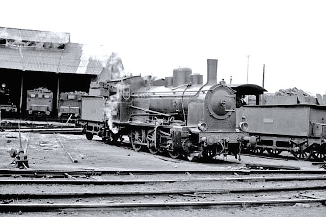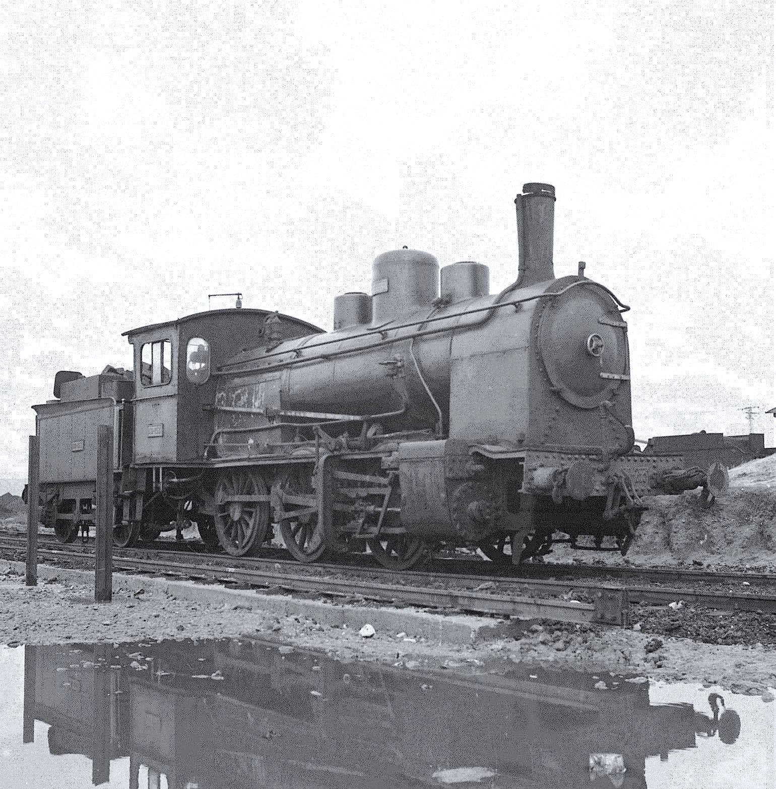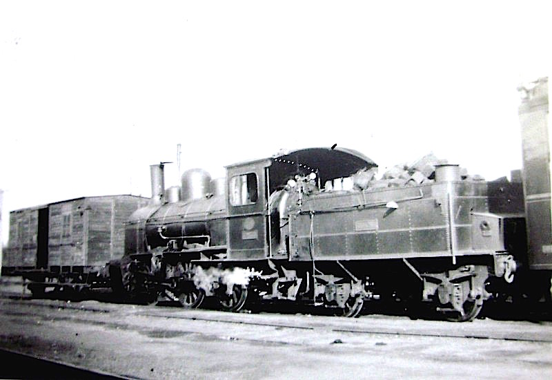 | Una locomotora de esta serie maniobra en Salamanca en 1952 (Foto: autor desconocido/ a través de Forotrenes) |