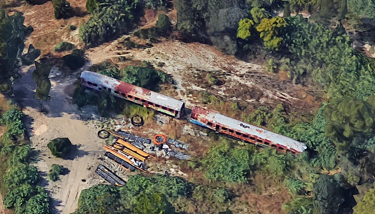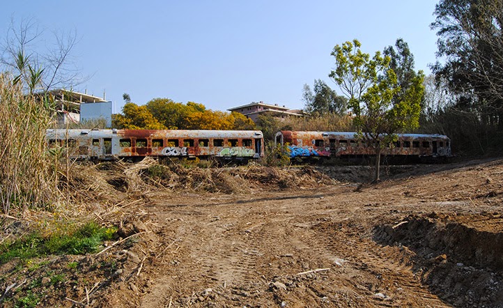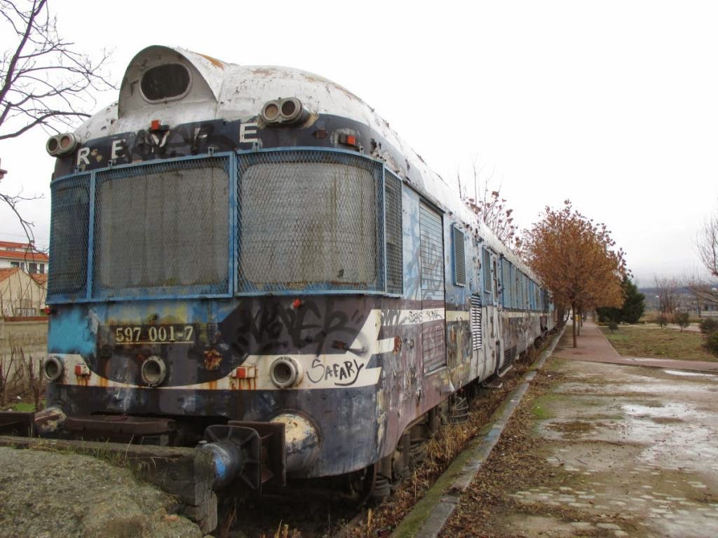 Mucho más triste fue la "aventura" del 9703. Tras ser dado de baja en 1994, sólo un año después de su reforma por Miro Reig, fue asignado a la UN de Mantenimiento de Infraestructura que lo envió al taller de Los Prados en Málaga para convertir el coche motor en un vehículo de reconocimiento de vía. Sin embargo el estudio económico no resultó positivo y el proyecto se anuló. Quedó apartado allí desde 1994 hasta 1999 sin ninguna protección. En el verano de ese año estuvo a punto por ser adquirido por una empresa de desguaces de Bobadilla pero finalmente lo compró un particular. Fue trasladado a San Pedro de Alcántara, parece que con la pretensión de instalar un restaurante en su interior. En 2001 y por parte de la FFE le fueron retirados motor y transmisión para ser utilizados en la reparación del 9710 (que era el que, en principio, se había asignado a Mantenimiento de Infraestructura). El proyecto del restaurante no prosperó y lo que queda hoy de lo que antes era un TER no es sino un conjunto de restos fantasmágoricos medio tapados por la maleza y en un estado absolutamente irrecuperable. Curiosamente hasta se hicieron algunas fotos de boda en su entorno e incluso se rodó en él este videoclip rap. En fin, un interesante y triste relato de cómo el 9703 llegó a esta situación puede encontrarse en esta otra entrada del blog Treneando de mayo de 2016. Y aquí otro vídeo con una actualización de su estado en 2017. La verdad es que da pena y reparo verlo.
