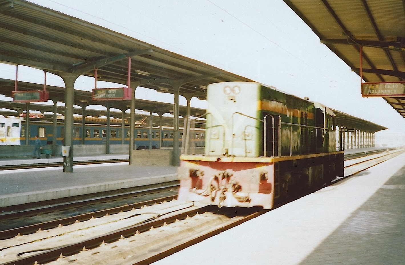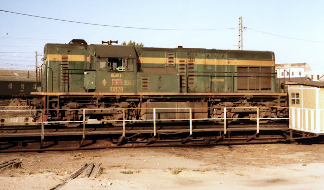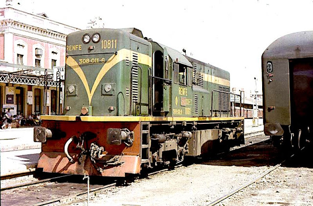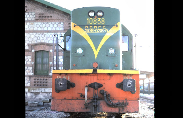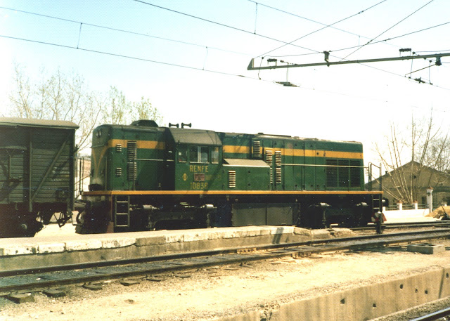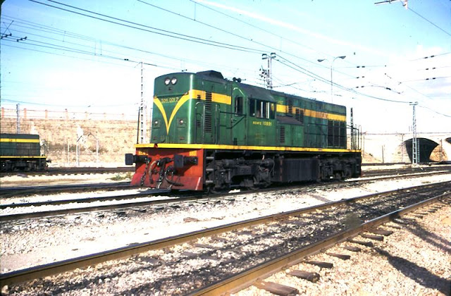 Las que llegaron a Madrid fueron empleadas en áreas de clasificación y en estaciones tales como las de Chamartín, Aranjuez o Alcázar de San Juan. Fue en estos lugares donde obtuve mis primeras fotos de ellas. Así, creo que la primera la obtuve justamente en Alcázar, muy a finales de los 70, cuando fotografié también a los "talguillos" a los que ya dediqué una entrada anterior.
