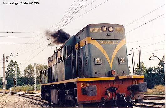 | Y la 308-034 también en Aranjuez. Febrero del 94. (Foto: Ángel Rivera) |