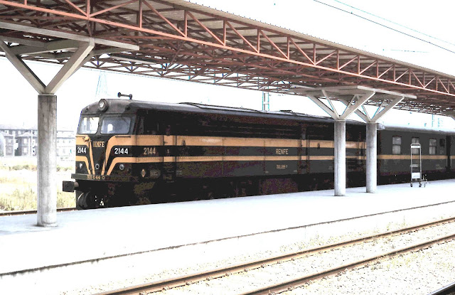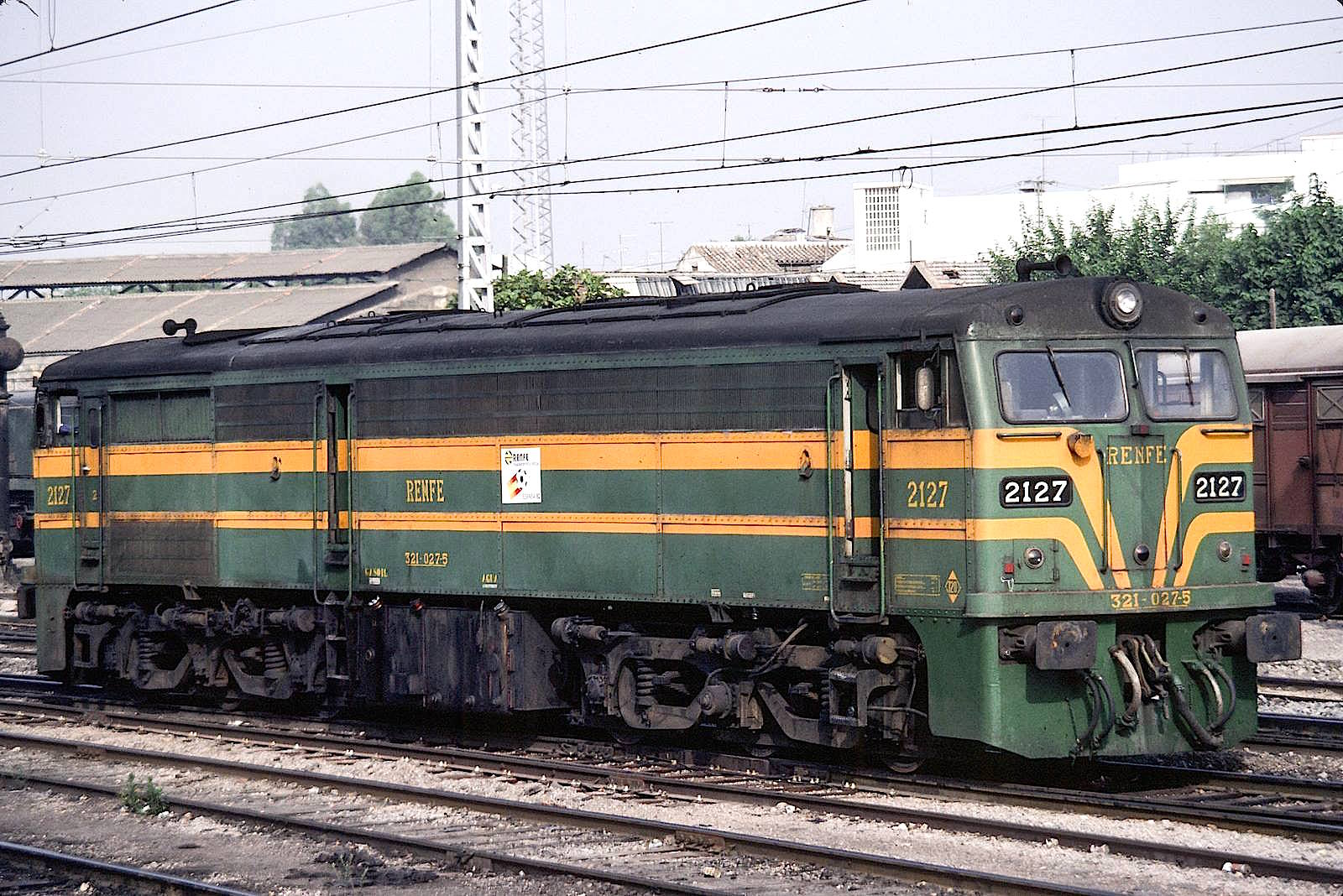 Ya, a principios de los 90, RENFE decidió efectuar en las 2100 una serie de modificaciones importantes de modo que pudieran seguir en el parque de locomotoras de línea y al mismo tiempo se inició su cambio de librea. Nos ocupamos de ello en la segunda parte de esta entrada, pero antes podemos quedarnos con este vídeo y este otro, todavía con su vieja librea y con ese ruido tan característico de su motor.