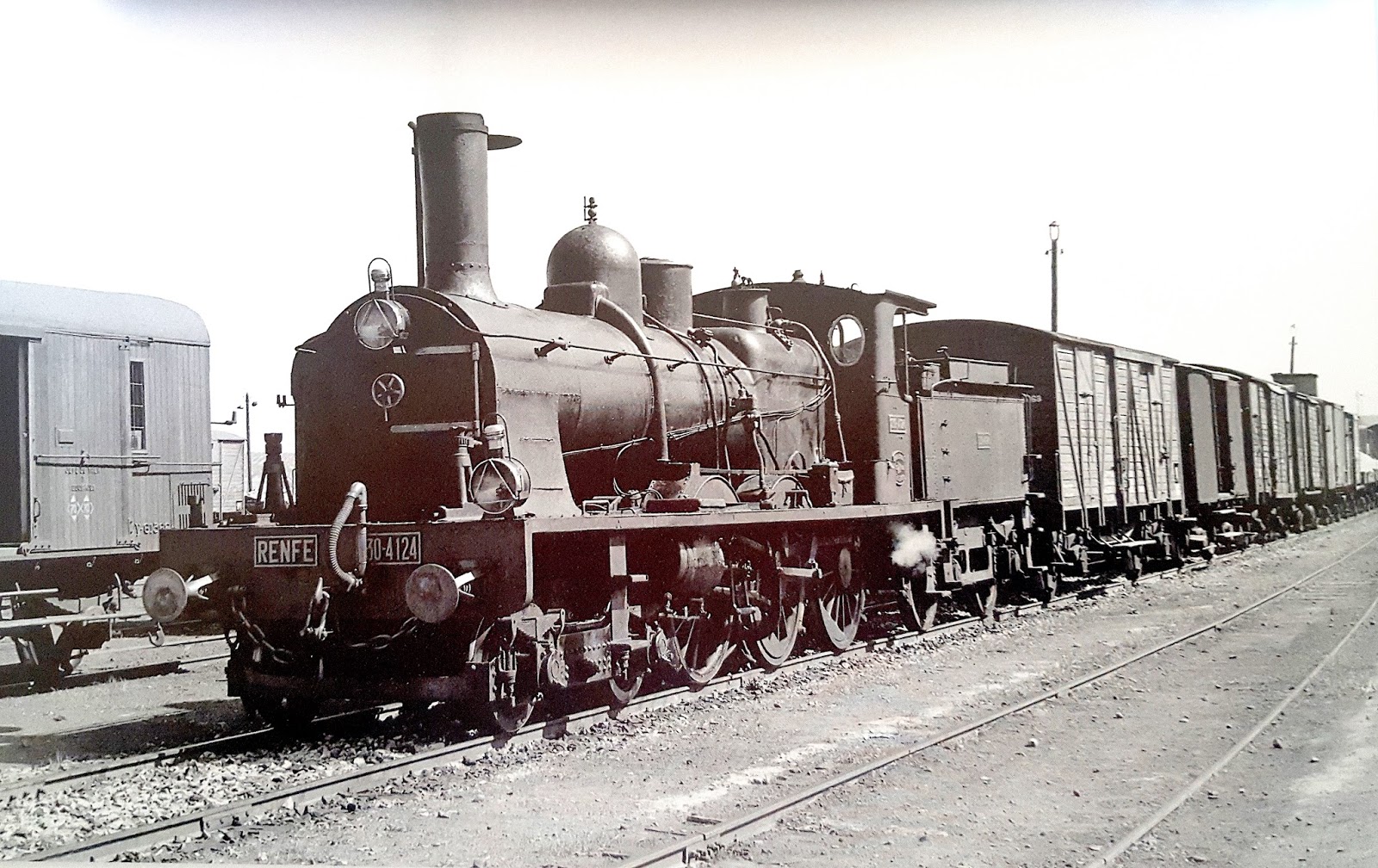 | También de la época de estas locomotoras en Andaluces es esta foto tomada por un fotógrafo desconocido en un lugar también desconocido (cortesía J.A. Méndez Marcos/Aitor F. Baños) |
