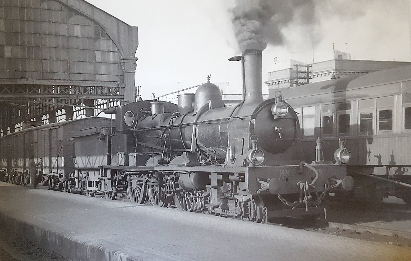 | Una de las locomotoras de esta serie estacionada en Utrera en agosto de 1951 (Foto: autor desconocido) |