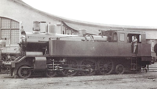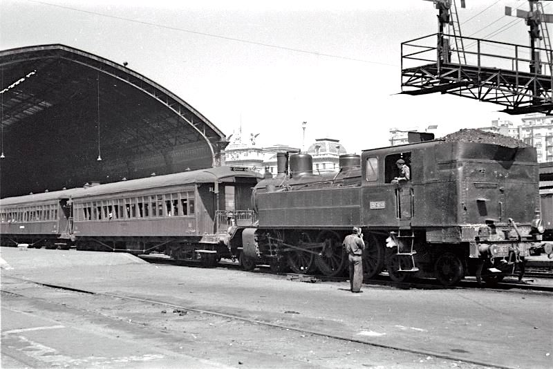 Nunca he sido muy entusiasta de las locomotoras tanque pero debo reconocer que las 2-3-2 "Baltic" que Maffei construyó entre 1903 y 1911 para las cercanías de MZA presentaban una armonía de líneas que superaba a muchas de las locomotoras con tender. Eran unas locomotoras con una potencia de 912 CV, un timbre de 12 kg/cm2, un diámetro de ruedas motoras de 1,544 metros y un esfuerzo de tracción de 6321 kg. Una característica curiosa de estas locomotoras era que iban dotadas de un compresor de vapor que alimentaba un circuito de aire comprimido, aunque también se las dotó con el freno de vacío vigente en MZA primero y RENFE después. El compresor fue suprimido ya en tiempos de la RENFE.