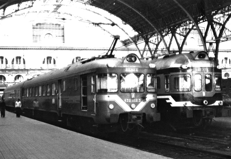 | Un electrotren fotografiado en la estación de Francia de Barcelona en agosto de 1986. Probablemente cubría servicio con Valencia o la frontera francesa (foto: autor desconocido) |