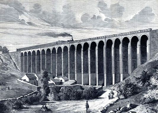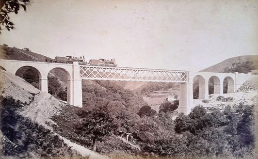 Entre las obras más espectaculares del ferrocarril de Palencia a Coruña destaca el viaducto de A Chanca, en Lugo. Archivo Euskotren/Museo Vasco del Ferrocarril