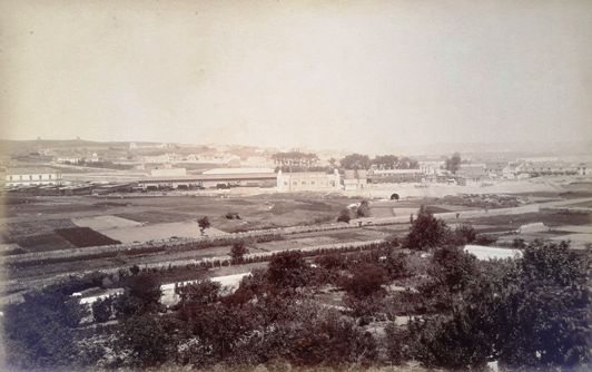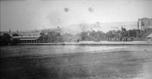 | Primitiva estación de A Coruña. Fotografía de Jean Laurent. Archivo Euskotren/Museo Vasco del Ferrocarril |