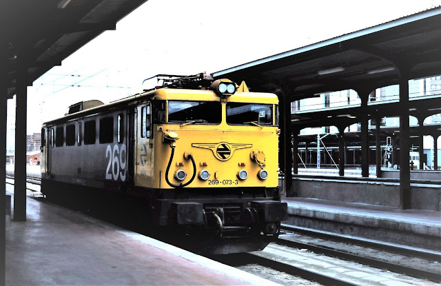 | La 269-073 ya con la librea amarilla y gris en Madrid-Chamartín en el verano de 1991 (foto: Ángel Rivera) |