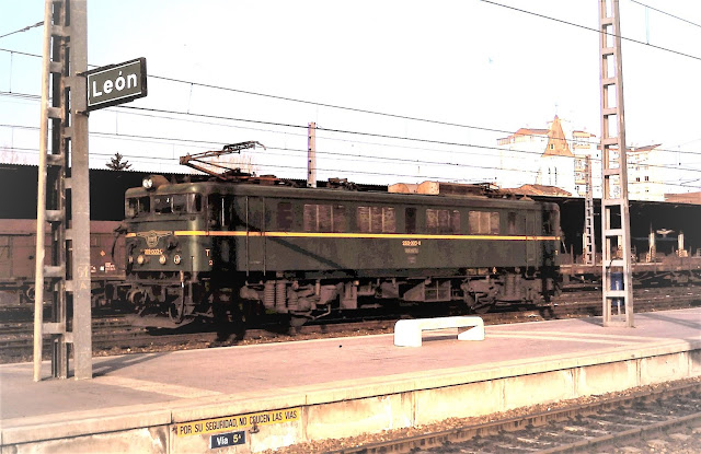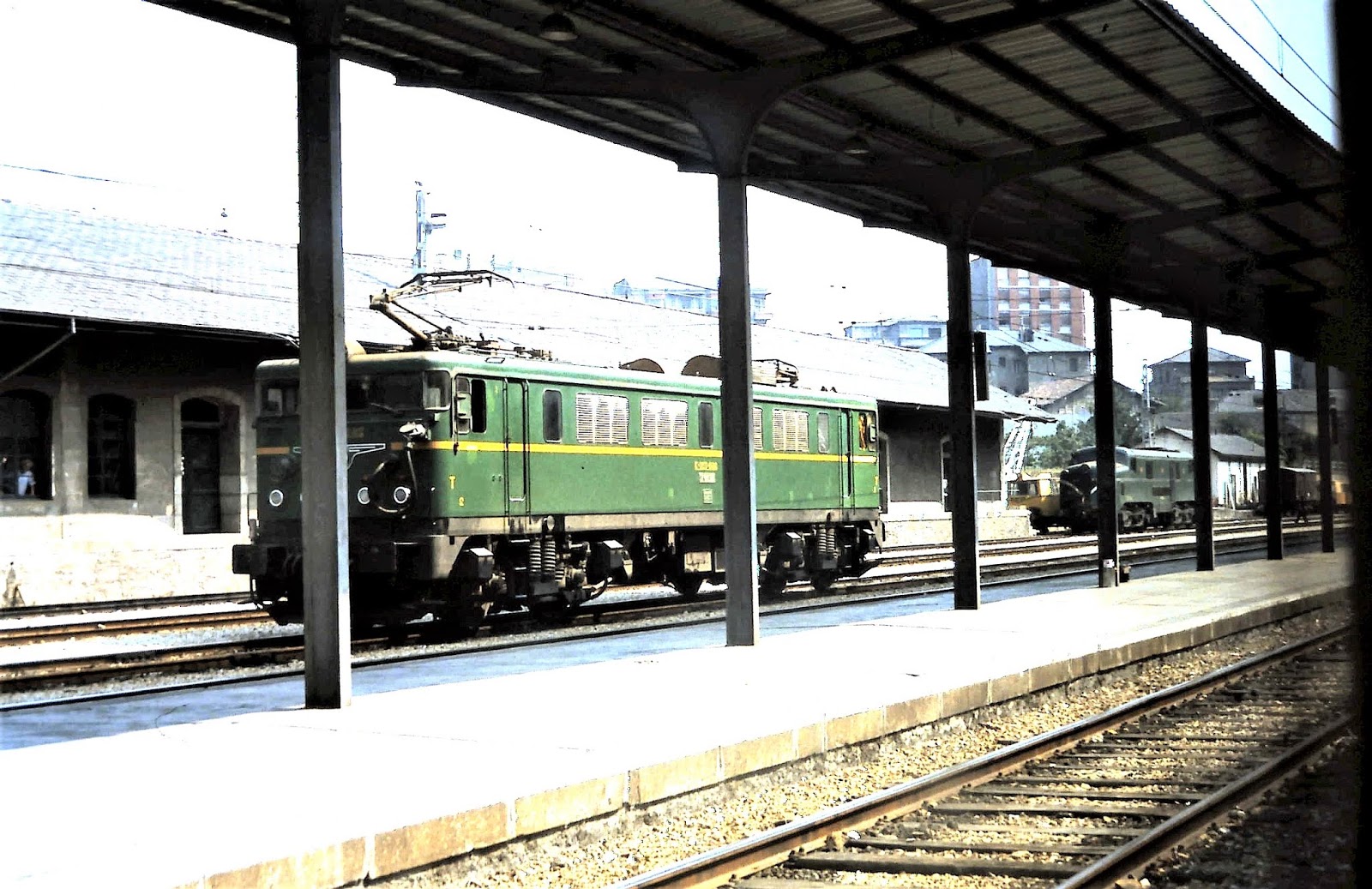 | En julio de 1982, una 269 no identificada en la estación de Ponferrada. Tras ella, una 7700 todavía operativa... pero no por mucho tiempo (Foto: Ángel Rivera) |