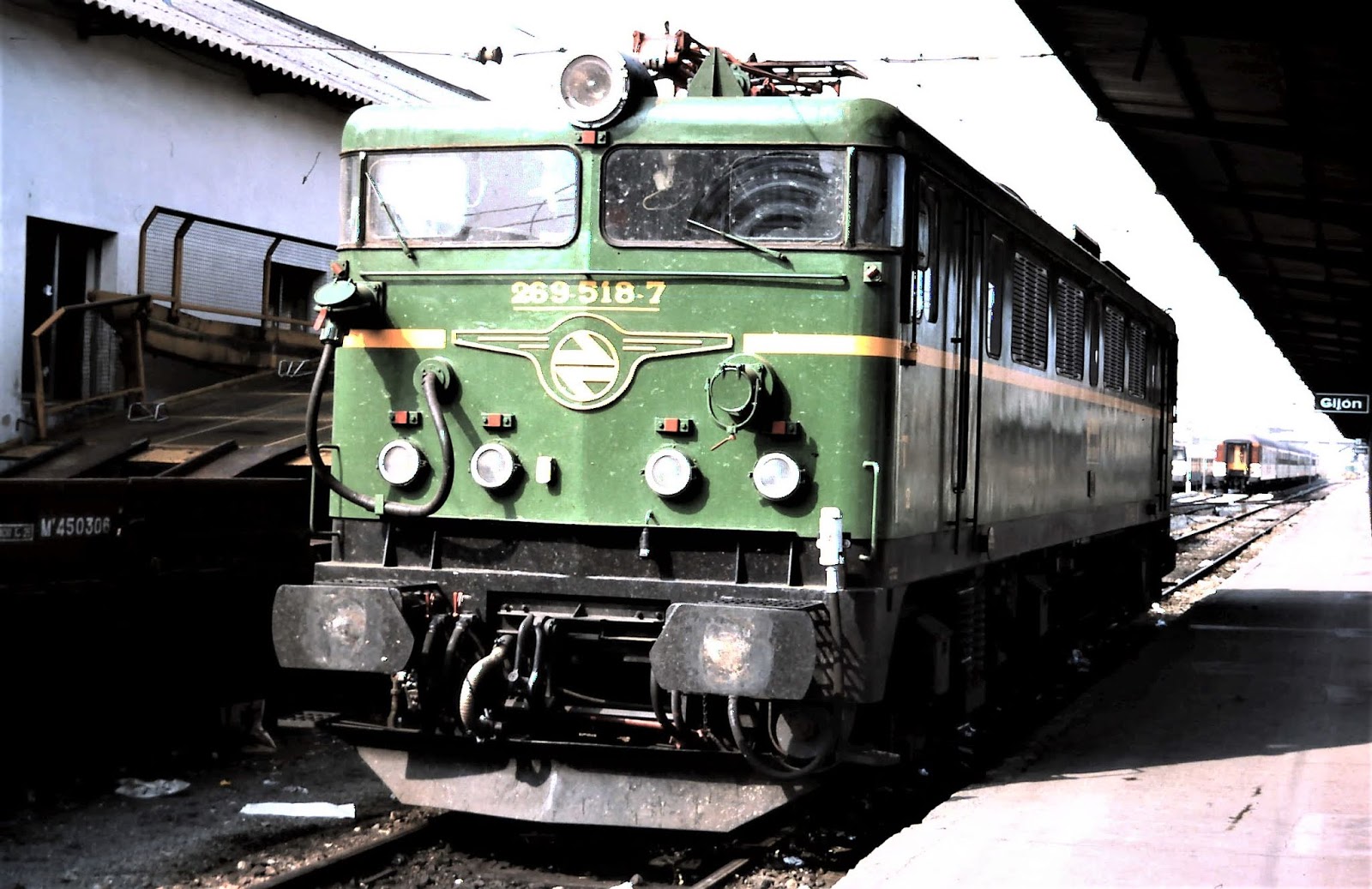 | La 269-518 en Gijón en agosto de 1989. Probablemente pertenecía a la dotación de Miranda y había llegado con algún expreso nocturno (Foto: Ángel Rivera) |