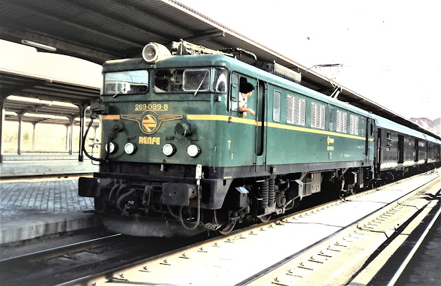 | En junio de 1981 la 269-099 aparece en la estación de Madrid-Chamartín en cabeza de un tren hacia el norte (Foto: Ángel Rivera) |