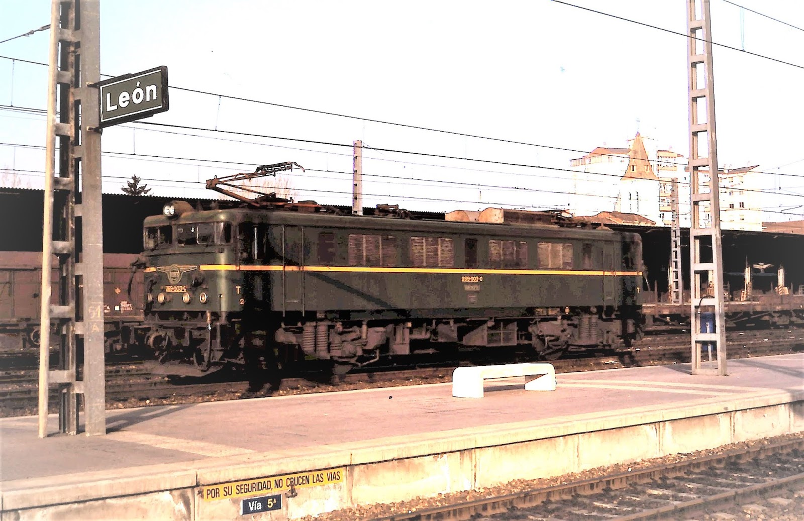 | La 269-001, primera de la serie en la estación de León en marzo de 1992 (Foto: Ángel Rivera) |