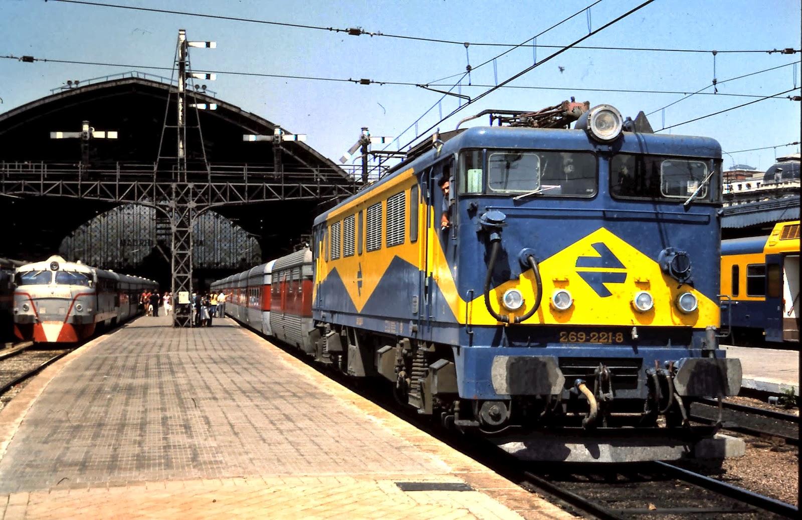 En agosto de 1982, y en este caso en Madrid-Atocha, fotografié a la 269-221, última de este primer grupo de la subserie 200, encabezando el Talgo Madrid-Málaga y apareciendo a su derecha la 2006T en cabeza del talgo de Granada y Almería. Por su parte, el convoy que aparece a su izquierda es un automotor diesel 592 en servicio entre Madrid y Cuenca. Lo que me extrañaba de esta imagen es que fuera una 269, asignada en esas fechas a Can Tunis, la que encabezara el talgo de Málaga; quizás podría tratarse de una rotación de material o bien de una etapa dentro de un largo turno.